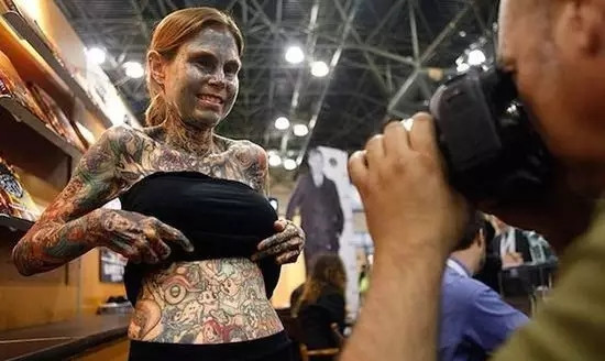 ÉúÓÚ 1985 ÄêµÄ¼ÓÄôóÄк¢ Rick Genest £¬Ëû¾õµÃÉíÌå¿ÉÒÔ³ÉΪһ¼þÐÐ×ß×ŵÄÒÕÊõÆ·£¬´Ó 19 Ë꿪ʼ£¬±ãÅÚÖÆ×Ô¼ºµÄÈ«Éí´ÌÇà¼Æ»®¡£Ëû»¨ÁËÈýÄêʱ¼ä£¬²»Í£µÄÉè¼ÆºÍ´ÌÐå·ûºÏ×Ô¼ºÁ³ÐͺÍÉíÐεÄͼ°¸£¬Ö±ÖÁ´ÌÇ಼ÂúÈ«Éí£¬ÏÖÔÚËûÊÇÒ»ÃûÒÕÈ˺ÍÑݳöÕߣ»¶øÃÀ¹ú¼ÓÖݵÄÖìÀòÑÇ·¼ªÄÈ˹Ôò³ÉΪÁËÈ«Çò “most tattooed woman”£¨ÎÄÉí×î¶àµÄÅ®ÐÔ£©£¬ËýÈ«Éí 95% µÄƤ·ô¶¼±»¸÷ʽ¸÷ÑùµÄÎÆÉíËù¸²¸Ç¡£